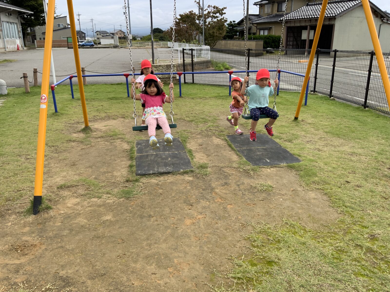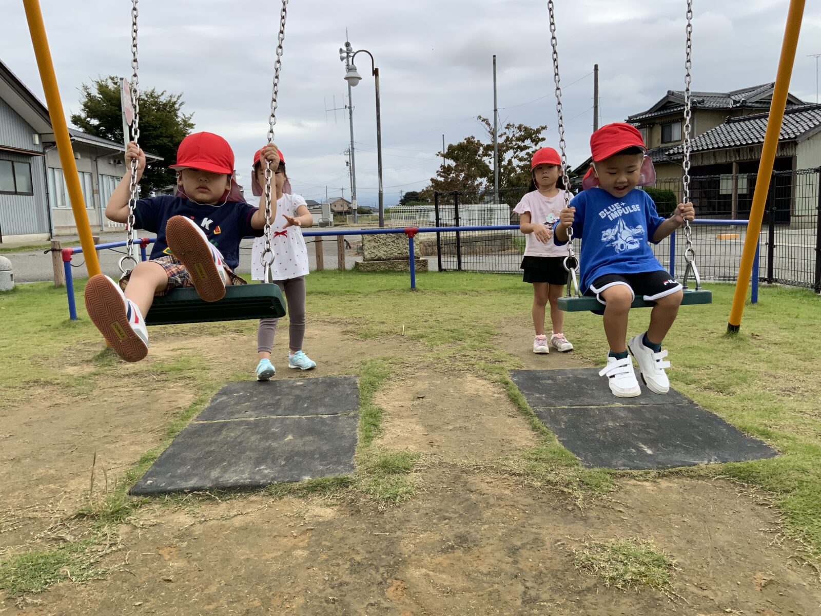 ブランコでは、年上児が押してくれました( ^)o(^ ) 「1.2.3・・・・10 で交代~」