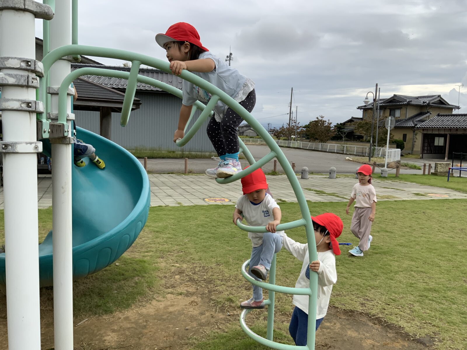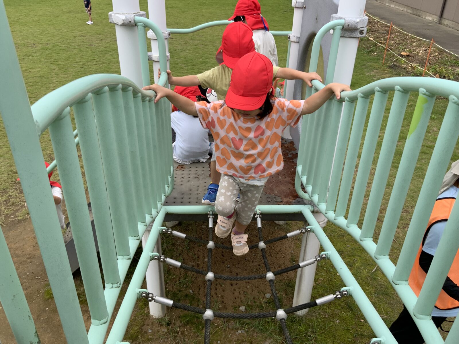 今日は、3,4,5歳児と初めて「みどりの広場」(通称・・日末の公園)にお散歩に行ってきました。
