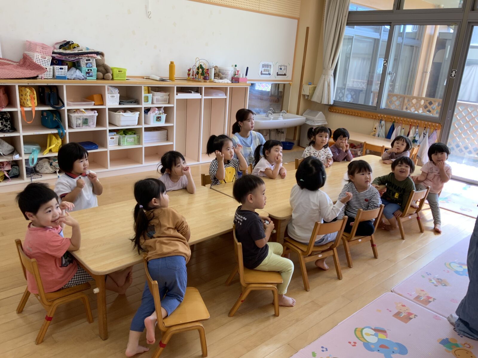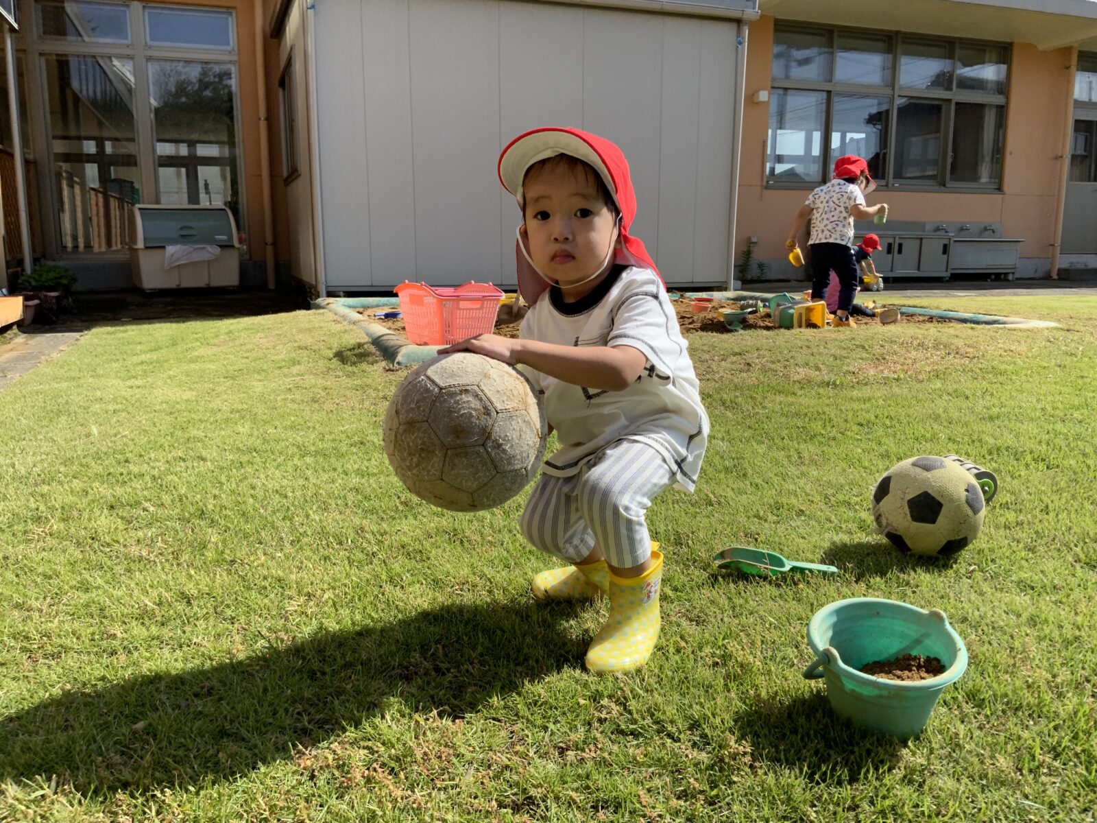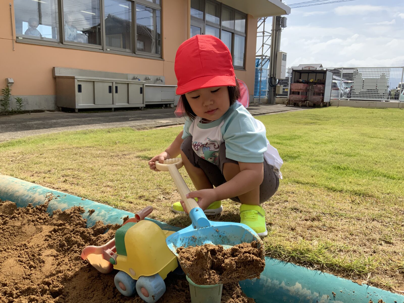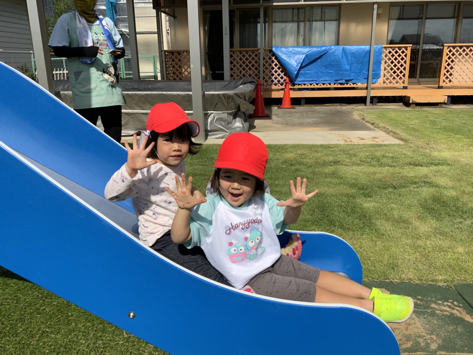 また、少しずつ涼しくなってきました。園庭に出て遊ぶことができるようになり、砂遊びをしたり滑り台を滑ったりと体を活発に動かして遊ぶ姿も見られます。