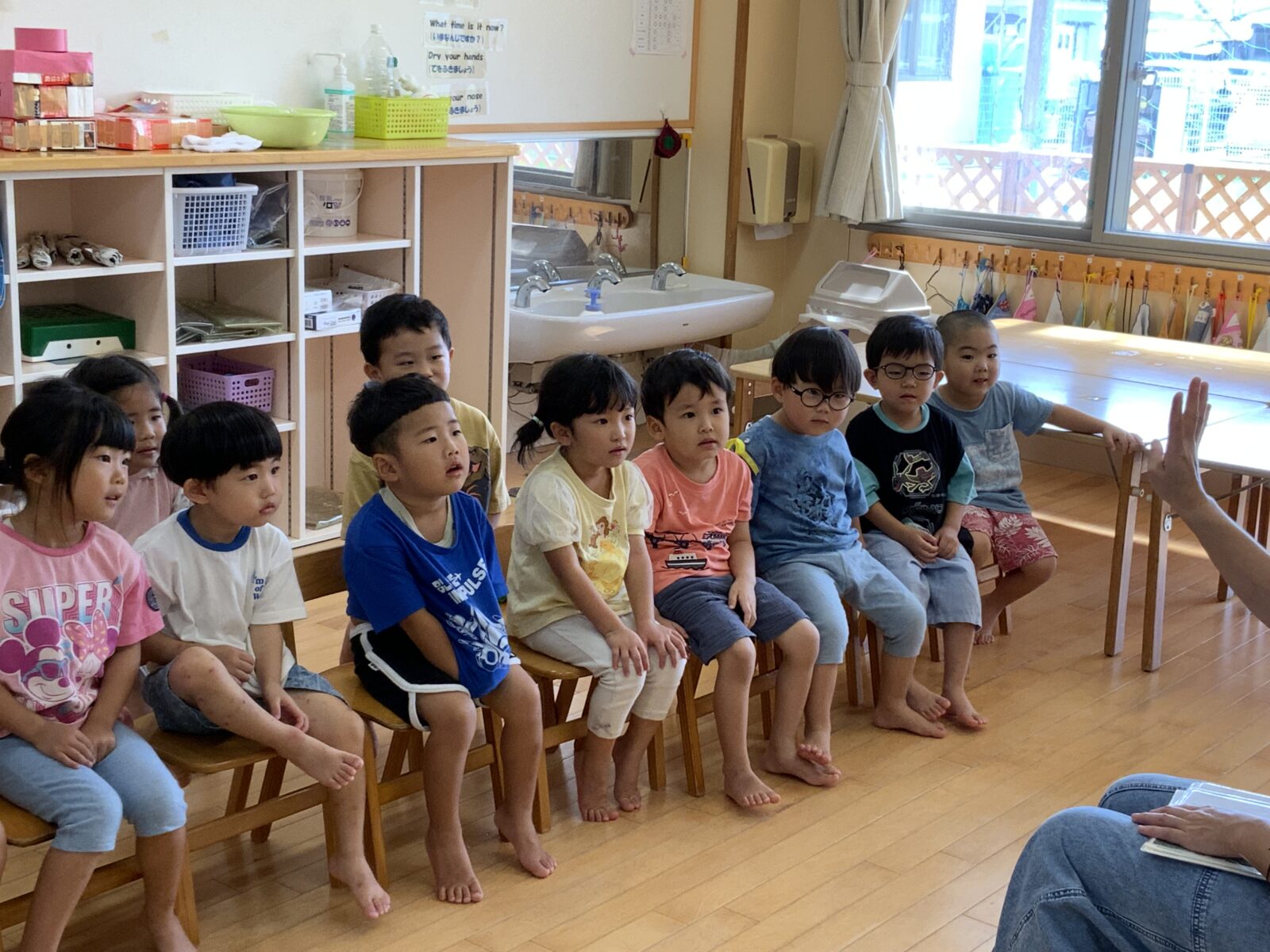 外部講師ようこ先生に英語の本を読んでもらったりしています。