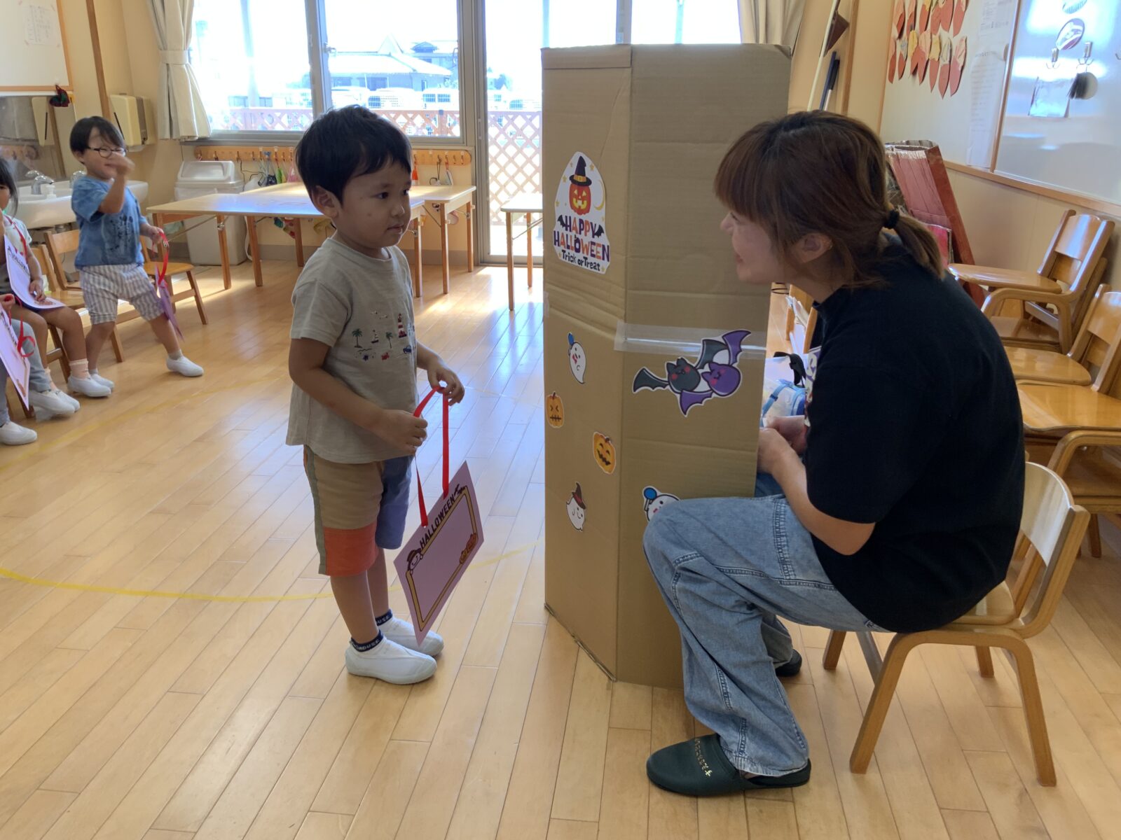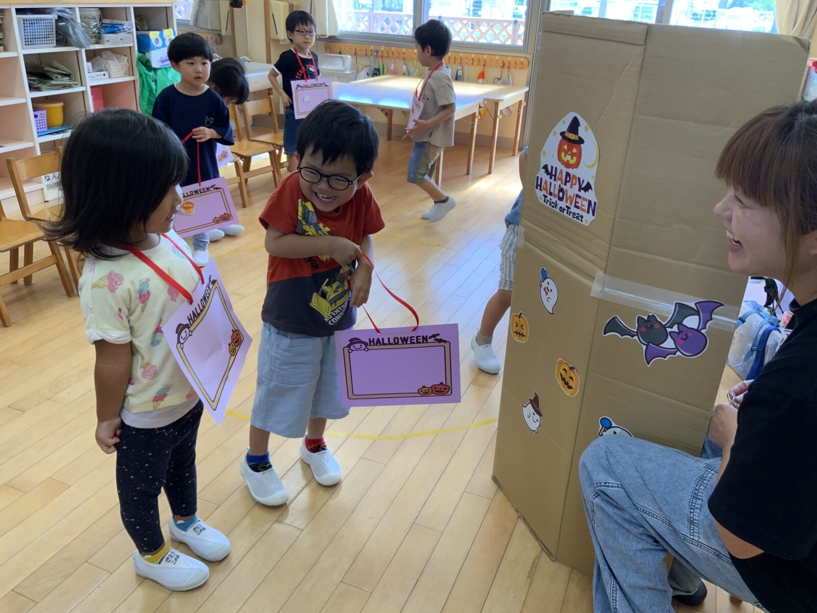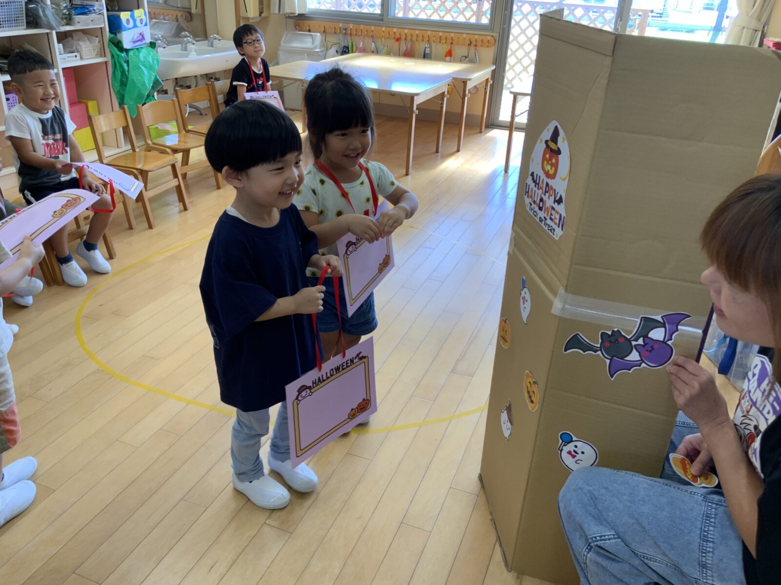トントン  「トリックオアトリート」と言ってお菓子のカードを貰いました。