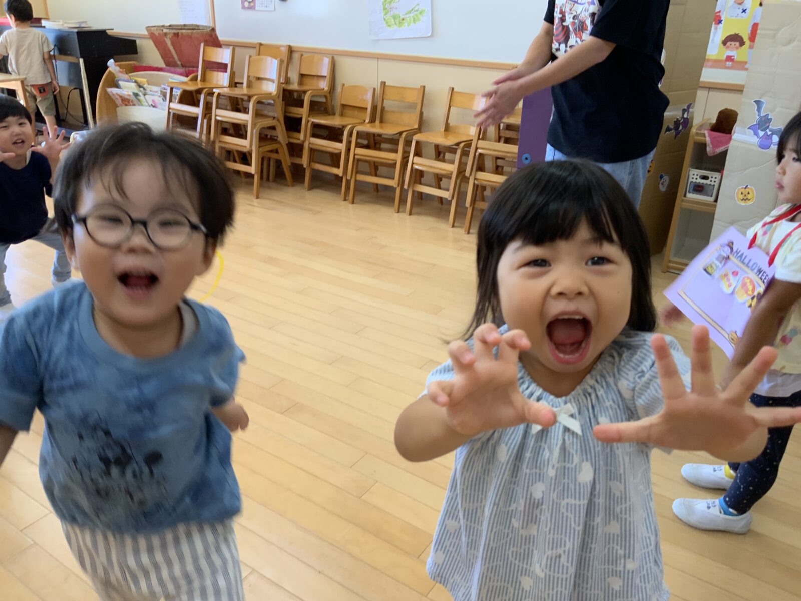ちょうど、10月31日の英語教室は、仮装をしてしました。着たい子は、自分の好きなものを1つ選んでつけてみましたよ。