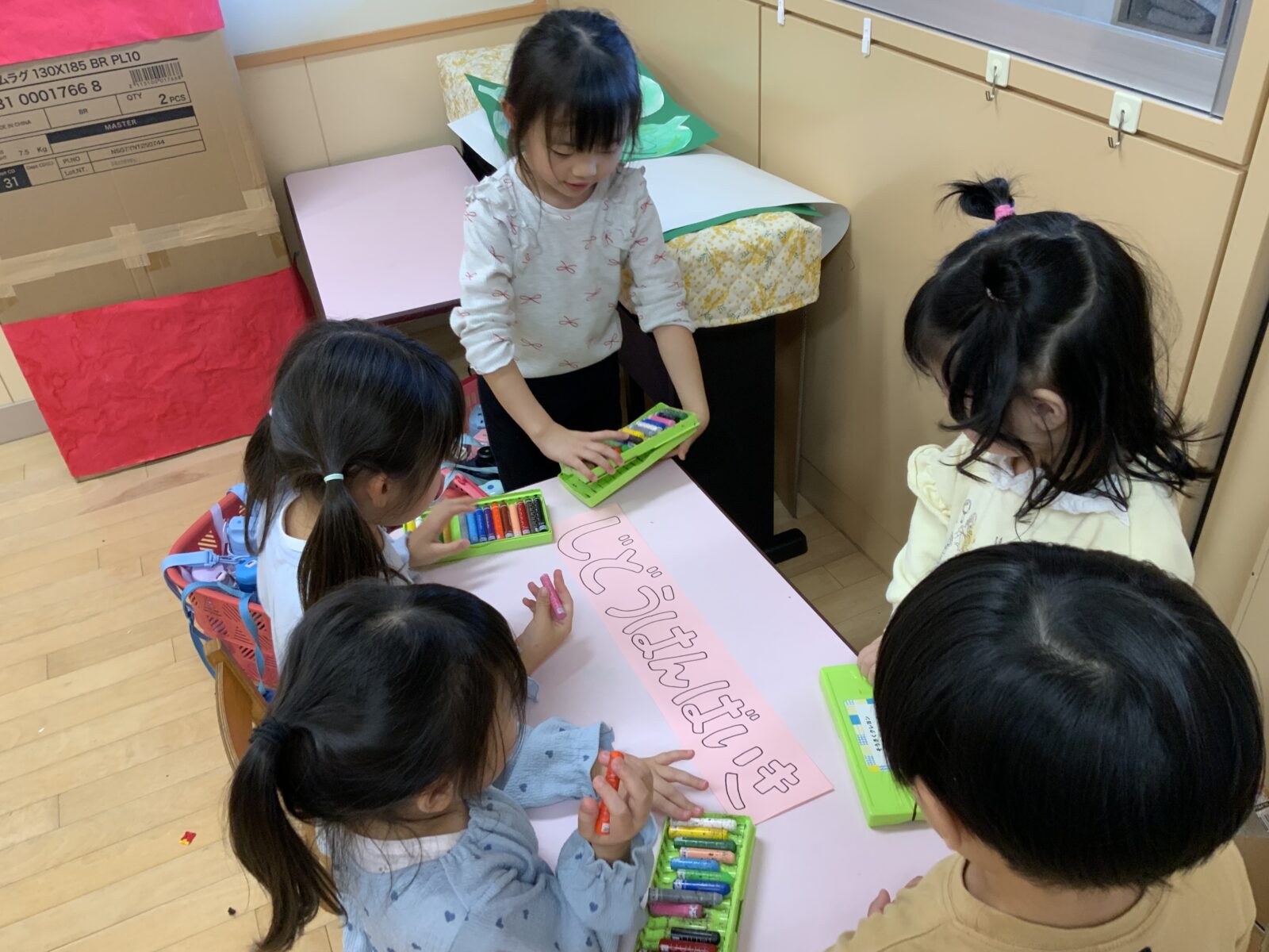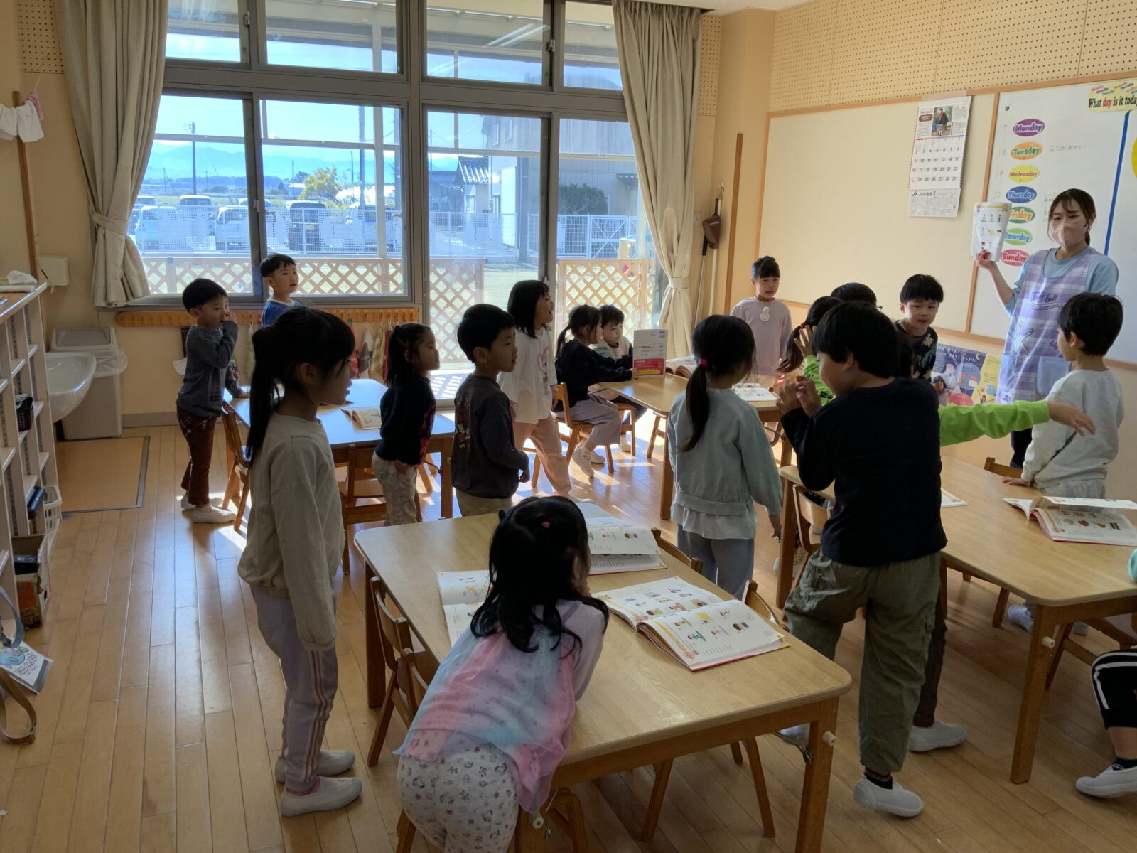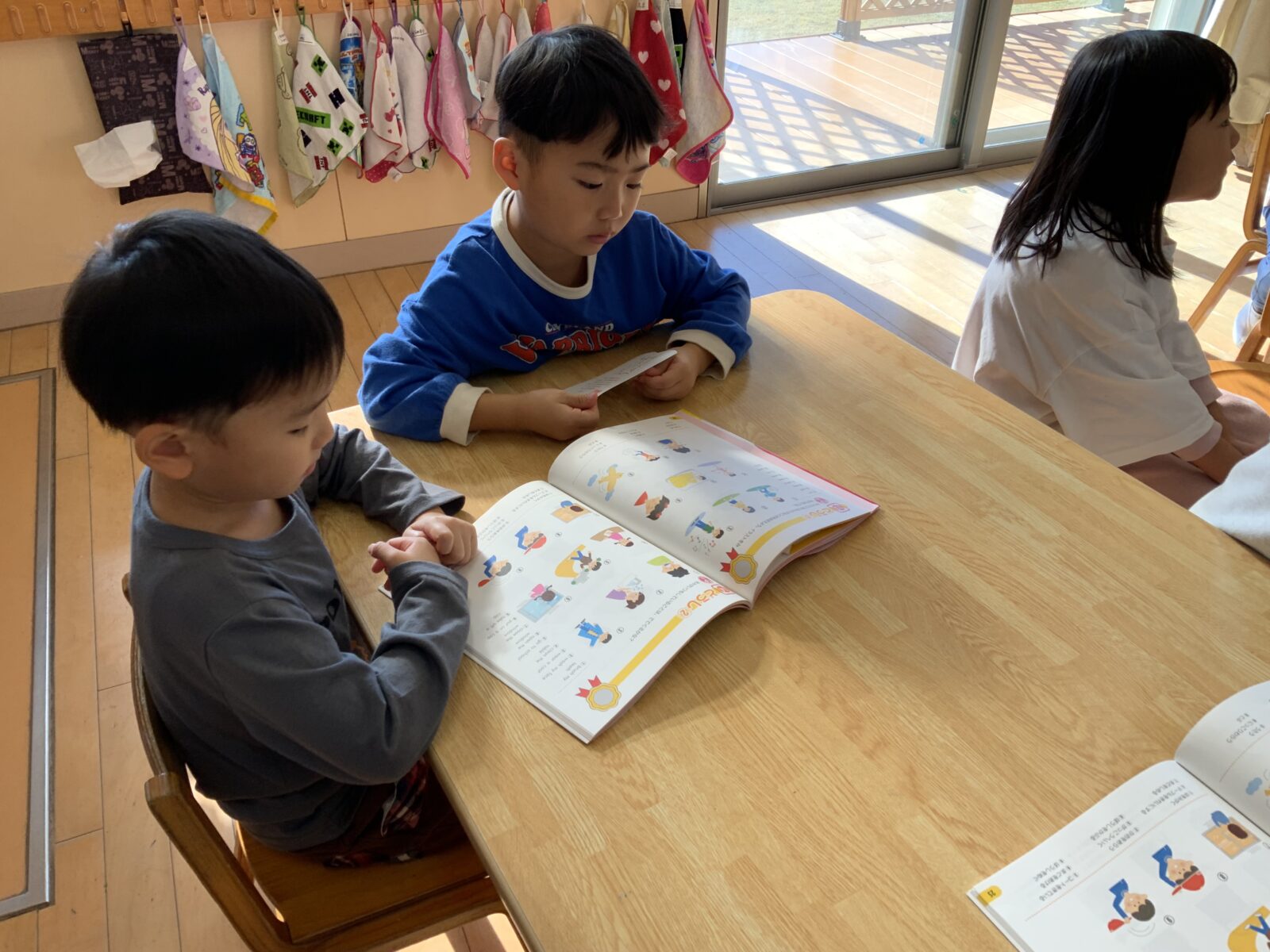 【4,5歳児】英語の様子とHAPPYフェスティバルの練習頑張っているよ。 投稿日: 2025年11月28日2025年11月28日 投稿者: すえさみこども園 最近は5歳児は英検に向けて少しずつテキストの問題を解いてみていますよ。3択問題からどれかな~?と考えて正解を選んでいますよ。4歳児も一緒にやってみています。 HAPPYフェスティバルに向けて毎日練習を頑張っている子どもたち。ぽんたのじどうはんばいきの大道具、小道具も子どもたちと一緒に作りました。 ナレーター、セリフも覚えてきて大きな声で言えるようになってきました。 保護者の方に見に来てもらえることをとても楽しみにしているみんなです♡ 関連記事: [3歳児] お正月あそび・こままわし [2歳児] 今週のちゅうりっぷ組さん {5歳児} 夏の思い出づくり [0歳児]蓮池公園