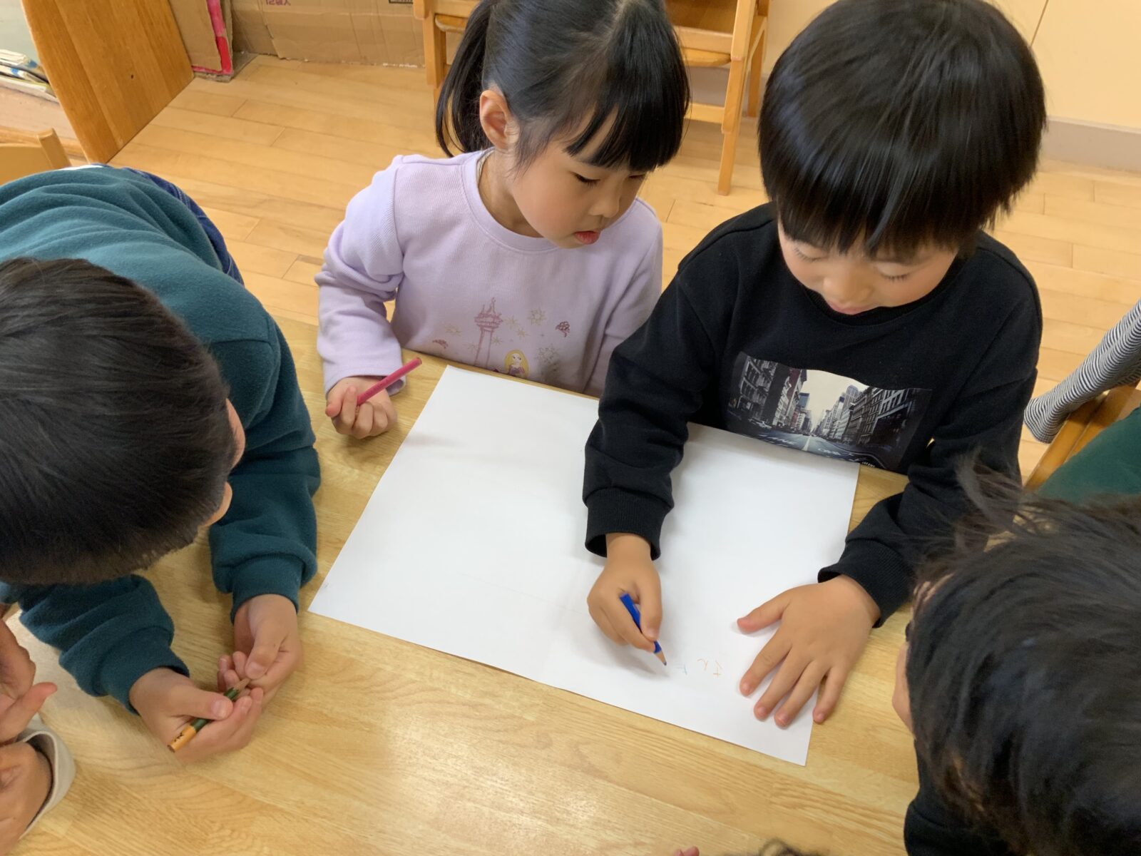 グループのお友だちと話し合いをしました。