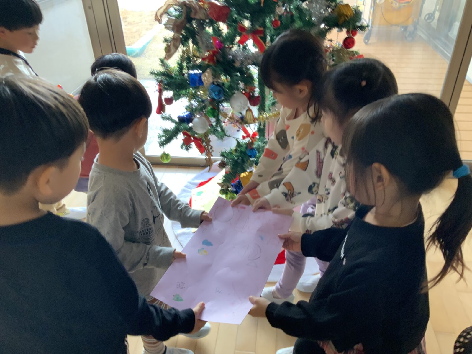 「お家にもツリー飾ったよ!」「サンタさんにお手紙書いた~」などお話している子どもたちです!