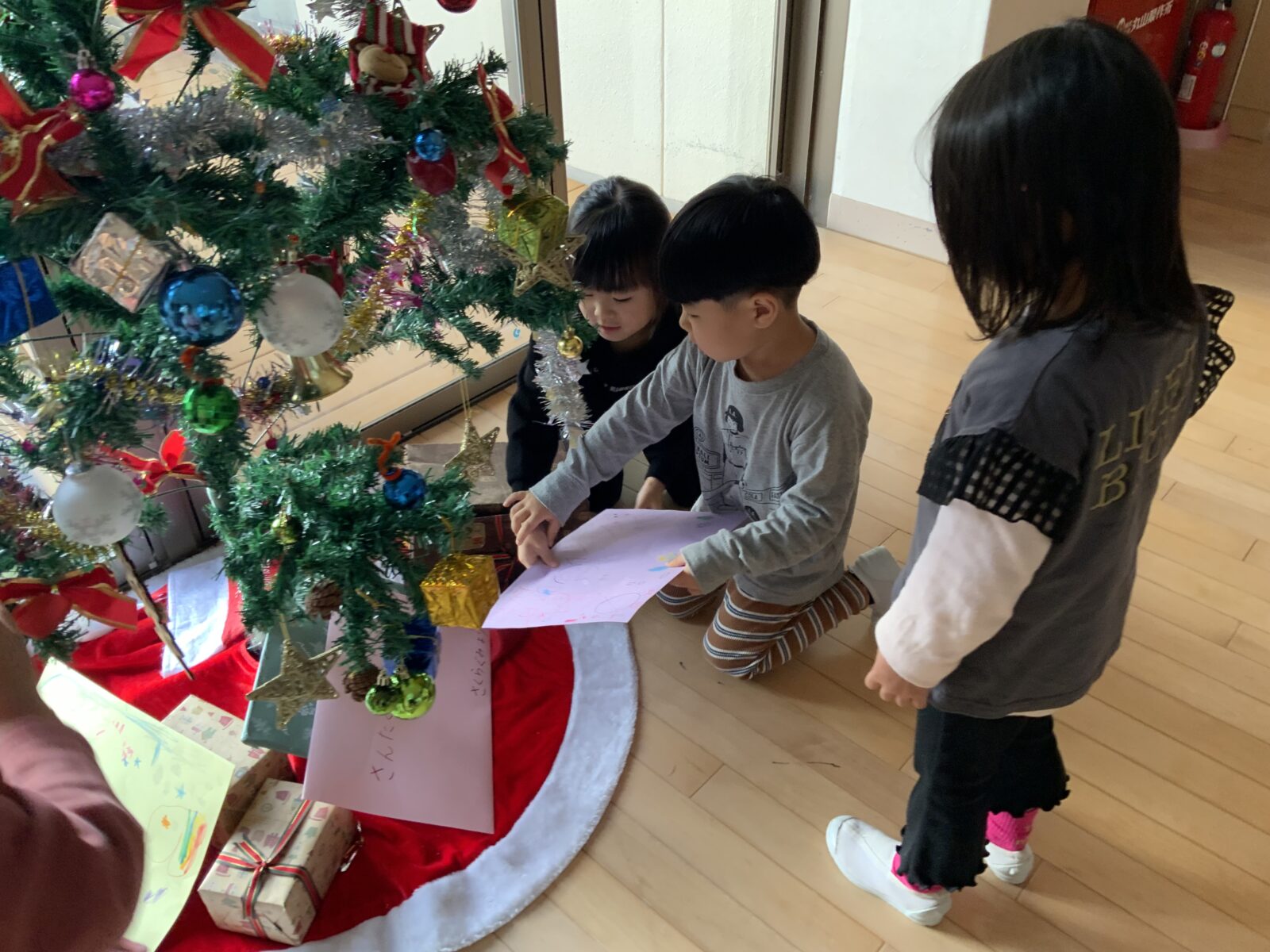 そしてみんなで書いたお手紙を、ツリーの下に置きました。