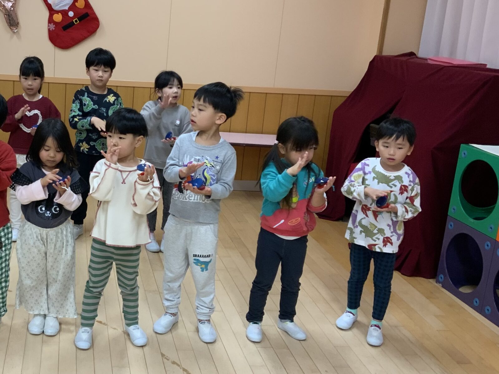 たんぽぽ・すみれ組さんみんなで「アンダーザシー」の楽器演奏をしたり、