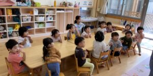 ひよこ組では、毎朝おやつを食べる前に朝の会をしています♪ 朝 …