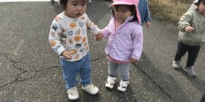 お散歩が大好きなつぼみ組さん! 農道で自由に歩いたり、探索し …