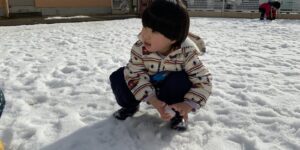 1月雪が積もった時に園庭に出て雪遊びをしました。 今年初の雪 …